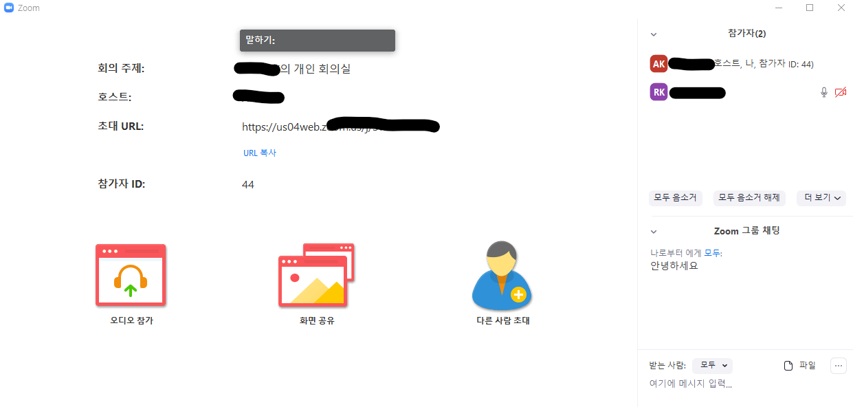 즉 회의를 여는 호스트만 회원가입하면 나머지는 프로그램만 설치되어 있다면 회원 가입 없이 회의에 참석할 수 있습니다.