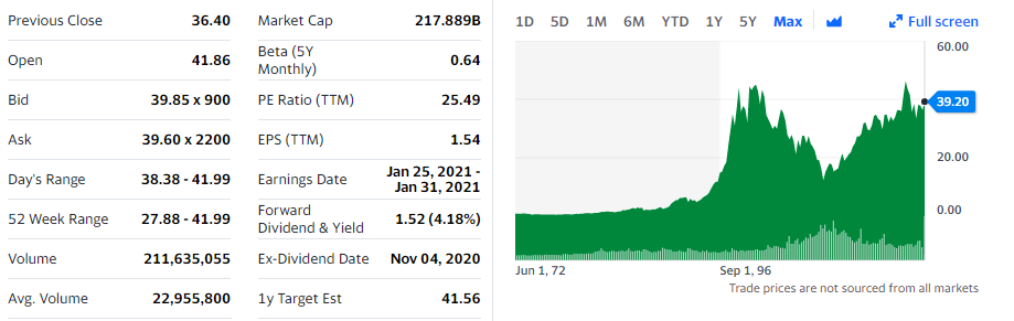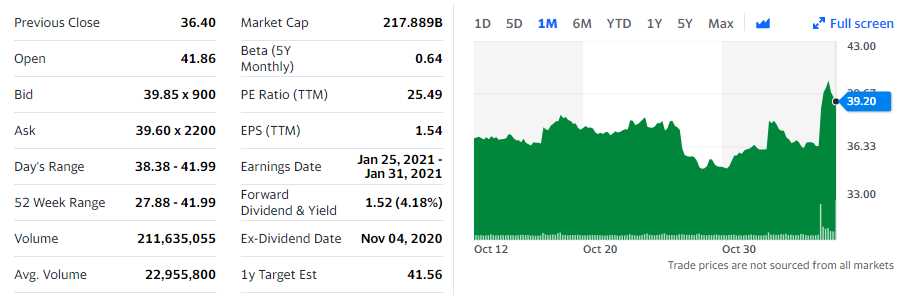 화이자의 주가를 먼저 보겠습니다.