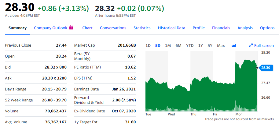 화이자의 주가