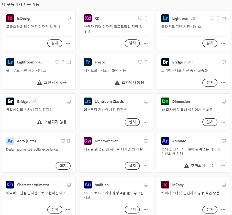 포토샵, 프리미어프로, 일러스트레이터, 애프터이펙트 뿐만 아니라