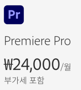 동영상 편집 프리미어 한개만 사용한다고 해도 가격이 24,000원/월입니다.
