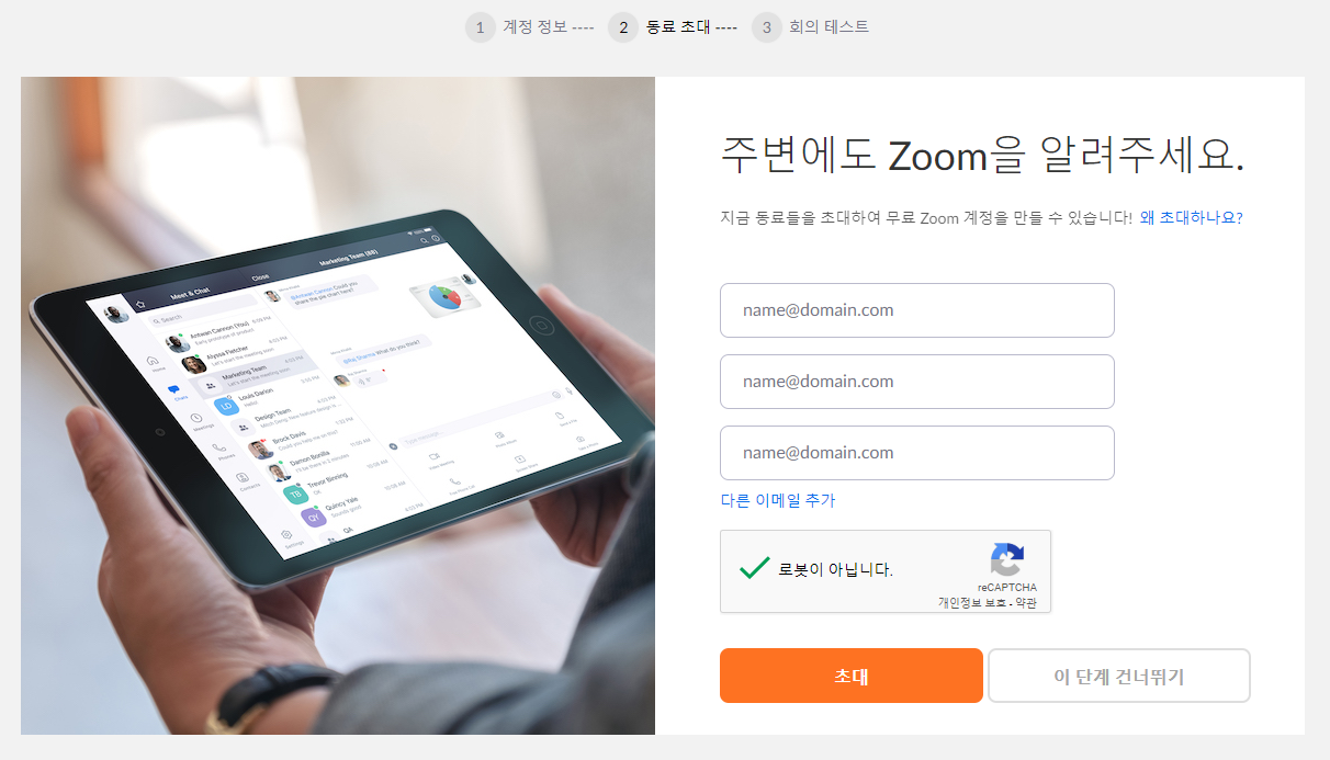 초대받은 사람은 ZOOM 회원가입이 필요없다는 점이 편리합니다.