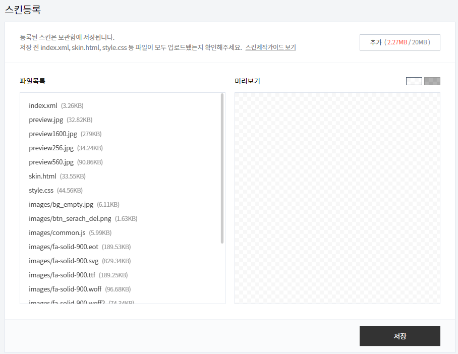 여기에서 저장을 누르고 스킨 이름은 고래스킨 4.0이라고 정해줍니다.