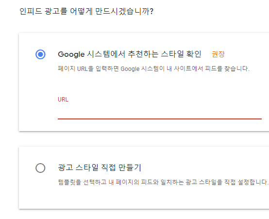 구글 애드센스에 접속하여 인피드 광고를 하나 생성합니다.