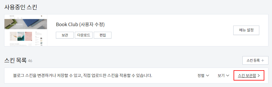 이제 아래 화면에서 스킨보관함을 클릭해보면