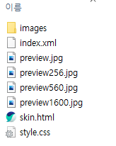 보통 일반인이 만든 스킨은 여러 파일들을 압축해서 배포합니다.