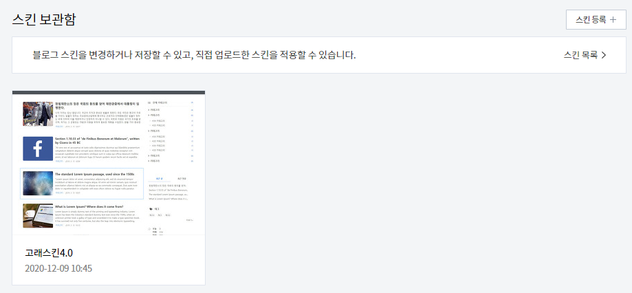 그러면 아래와 같이 현재 사용 중인 스킨이 나옵니다.