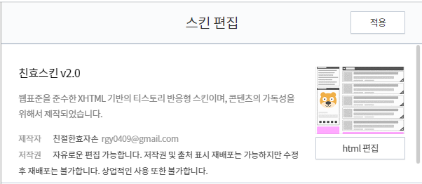 적용버튼을 누르고 티스토리를 방문해보세요.