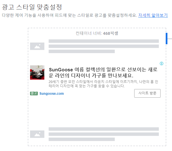 이후에 마음에 안 들면 광고 스타일 직접 만들기로 한번 해보세요.