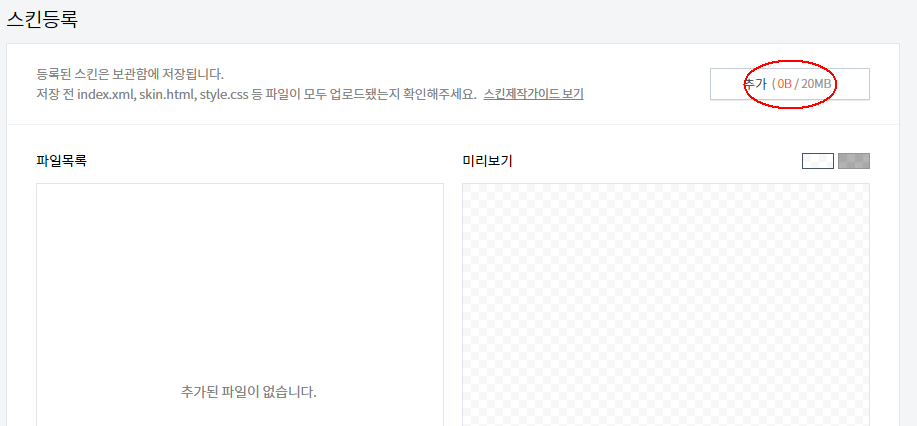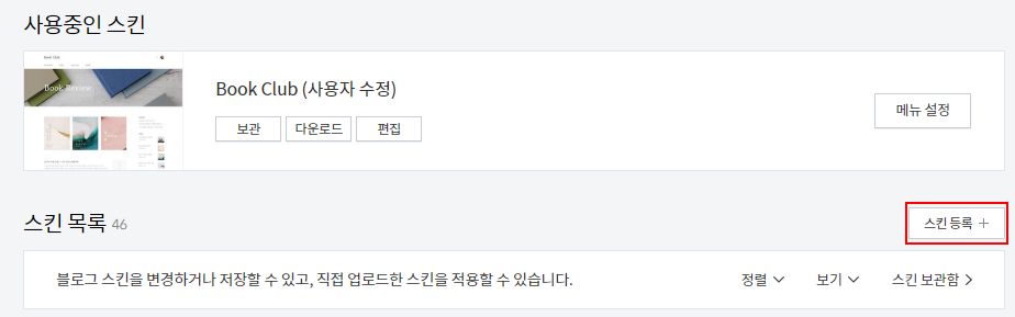 적용버튼 누르기 전에 기존 스킨을 백업 받아두는 것을 추천합니다.