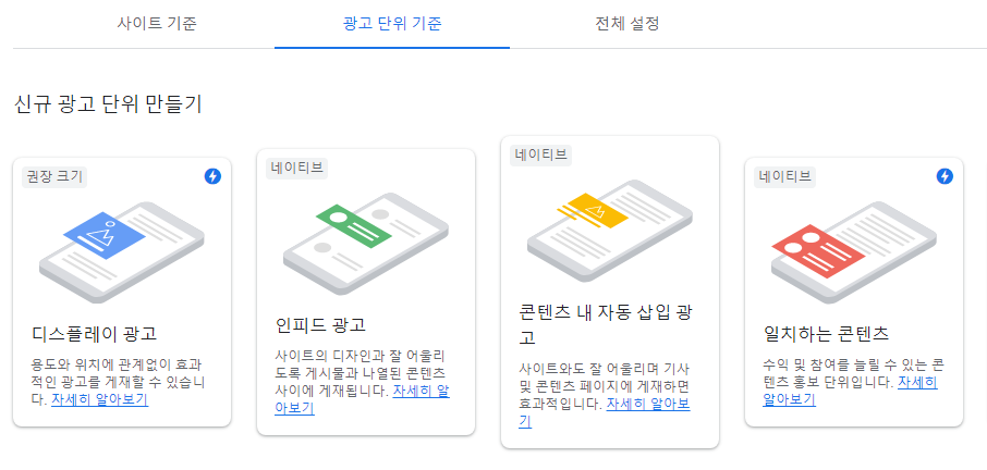 특히 인피드 광고는 별도로 설정을 해주어야 합니다.