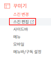 관리자 메뉴 - 꾸미기 - 스킨 편집을 클릭합니다.