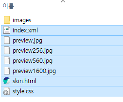 보통 일반인이 만든 스킨은 여러 파일들을 압축해서 배포합니다.