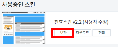 스킨변경 메뉴에서 현재 이용중인 스킨을 보관하면 됩니다.