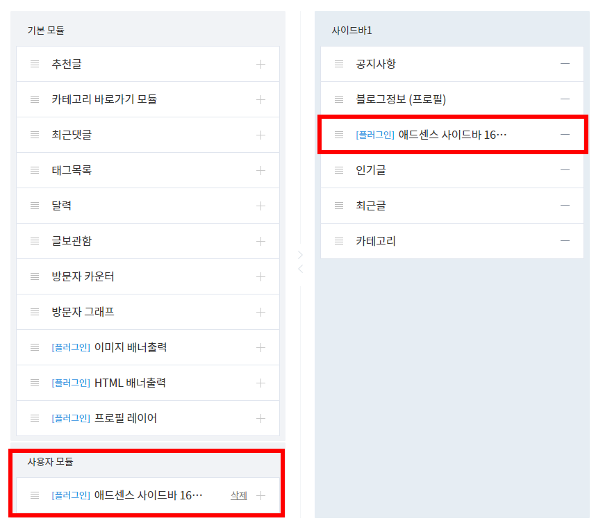 사이드바 HTML 광고 <- 사용자 모듈로 저장해 두어 이미 적용
