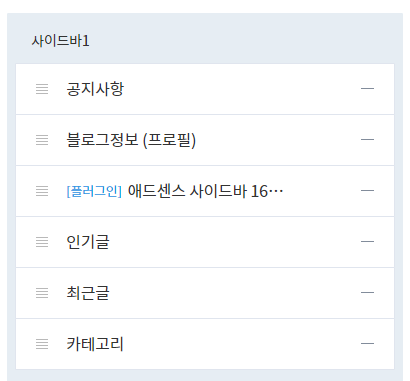 사이드바에 넣을 것들의 종류와 순서, 그리고 설정값을 그대로 카피하여 설정하면 됩니다.