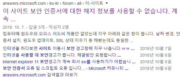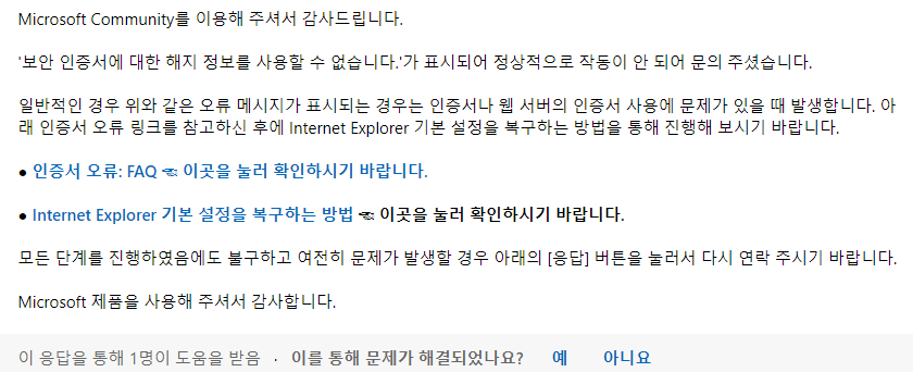 윈10 익스플로러 보안 인증서 에러 해결방법