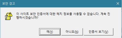 아래와 같은 보안 경고 창이 뜨는 것을 보면