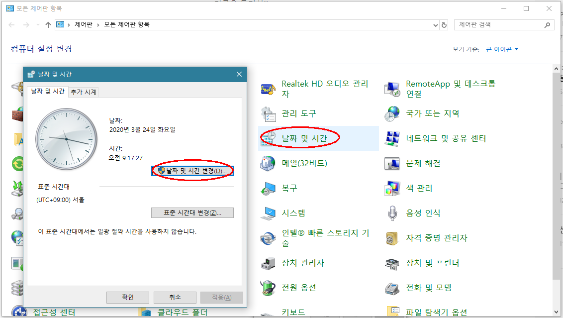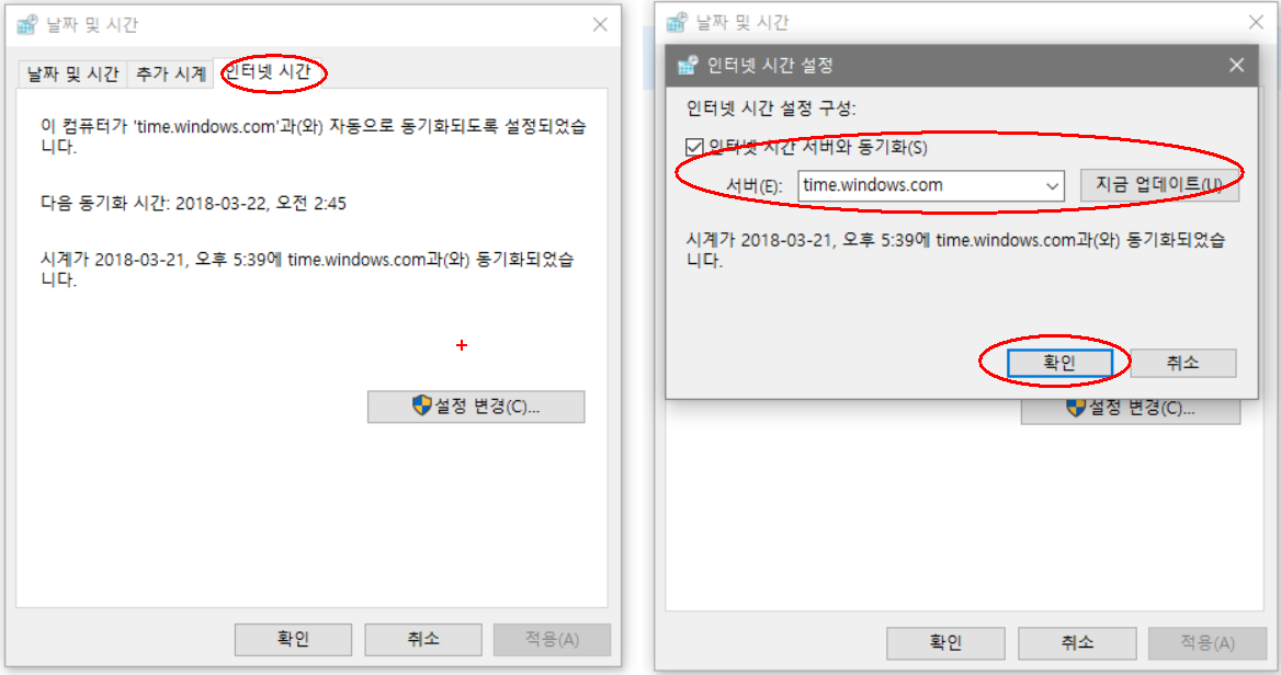 아마도 인터넷 시간 서버와 동기화가 되어 있지 않아서 생기는 문제인듯 합니다.