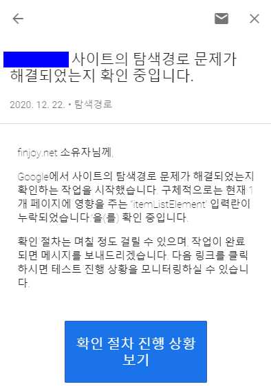 위의 메일 본문 중에 "탐색경로 문제 해결하기" 버튼을 누르면 아래와 같은 내용을 볼 수 있습니다.