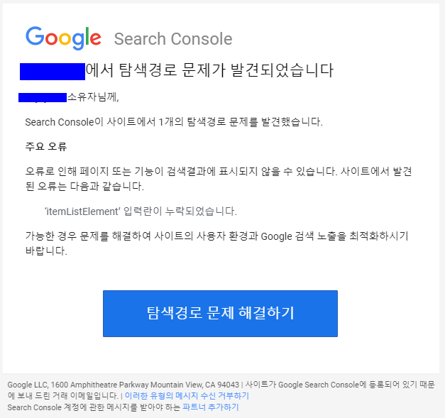 구글 서치콘솔에 접속 했을 때, 한번 씩 확인해보는 것이 좋습니다.