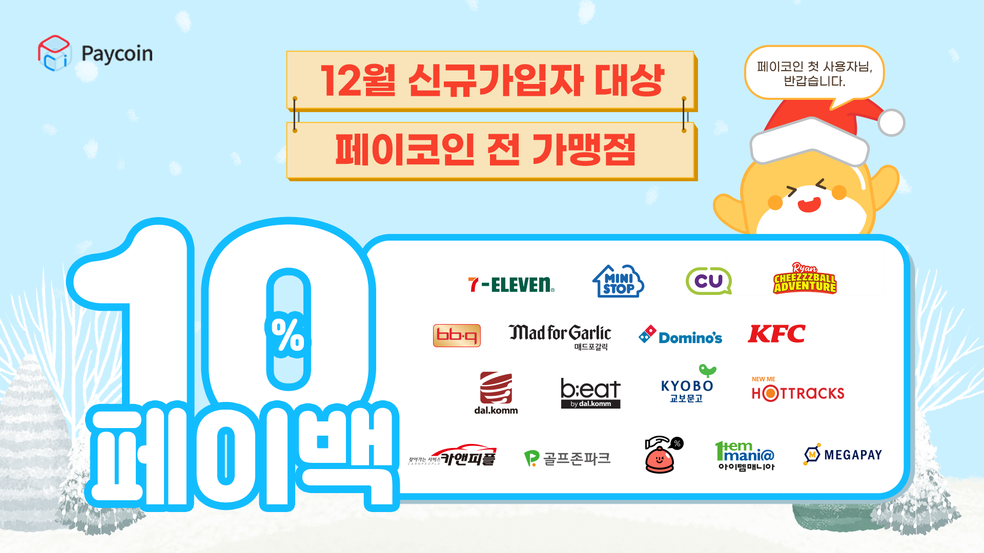 CU, 매드포갈릭, 골프존, 교보문고, 세븐일레븐, 달콤커피, 미니스톱, 도미노피자, SSGPAY, BBQ치킨, KFC