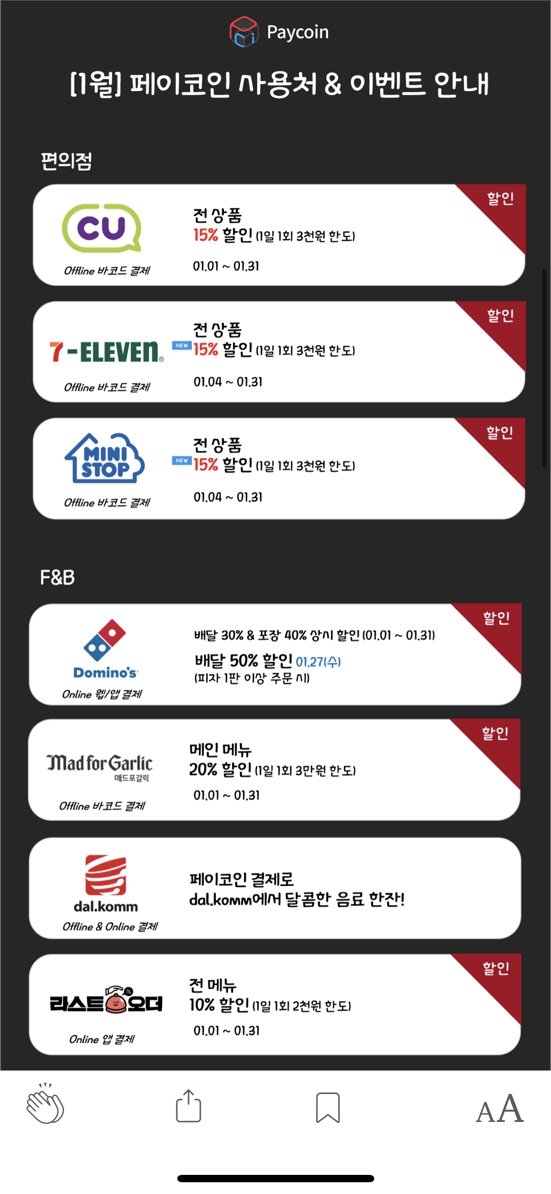 2021년 1월 페이코인 할인 정보
