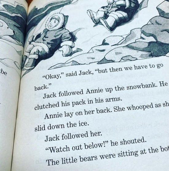 Polar Bears Past Bedtime이 흥미진진한 이야기가 되어가고 있습니다. 귀여운 아기 폴레베어 두 마리가 나와서 남매와 놀고 있는데 갑자기 얼음이 쩍 갈라지기 직전에 폴라베어 엄마가 나타나는 장면에서 끝이 났습니다.