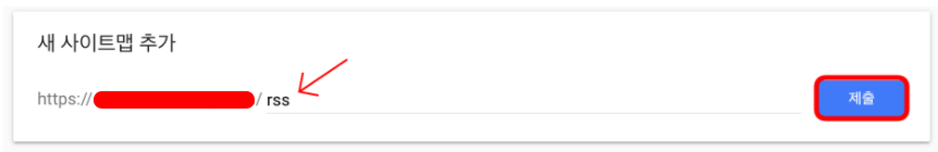 여기에 rss 등록은 소문자로 rss만 기입하고 제출버튼을 누르면 됩니다.