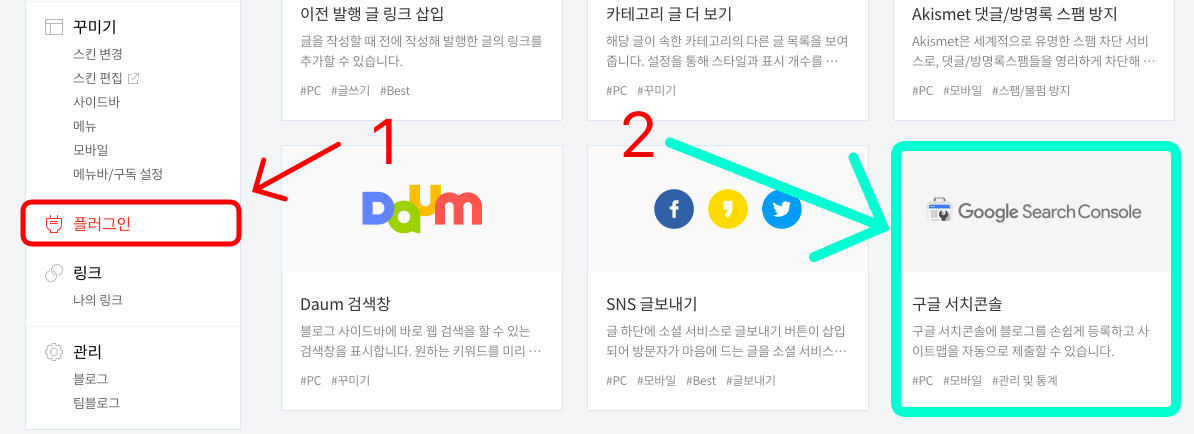 플러그인에서 구글 서치 콘솔을 찾습니다.