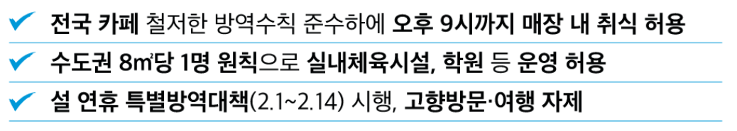 명절 고향방문과 여행자제까지 내려진 상황이라 이번에 확실하게 코로나 감소세를 만들어서 더 이상의 소상공인 고통은 없었으면 좋겠습니다.