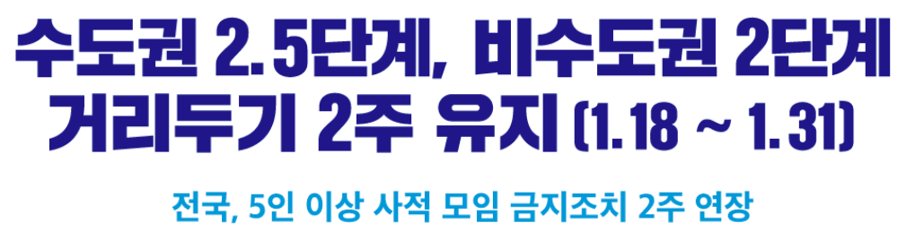 정부는 16일 오늘 오전 사회적 거리두기 2주 연장을 발표했습니다. 이로서 수도권 2.5단계 비수도권 2단계 거리두기가 2주간 지속될 예정입니다.