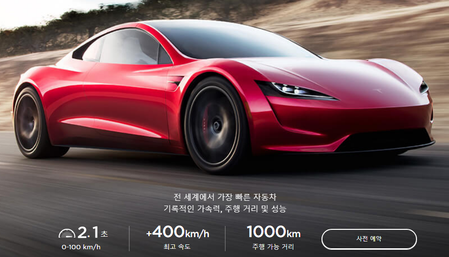 테슬라 전기차 로드스터를 볼까요?