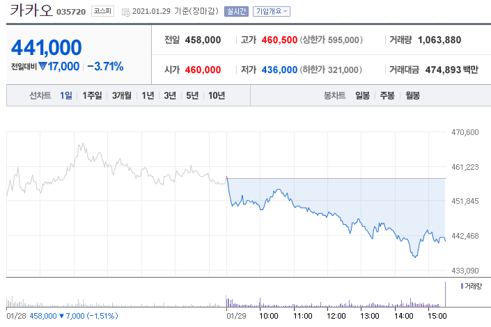 카카오와 네이버의 비전이 좋다고 생각해서 투자하는 분들은 요즘 같은 장에 흔들리지 않겠지만 단기 투자자나 최근에 입성한 투자자는 많은 혼란이 있을 것으로 보입니다. 오늘은 카카오의 주가가 많이 빠진 상황인데, 어떤 이슈가 있는지 살펴보고 점검해보겠습니다.