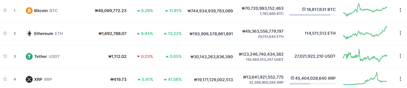 코인 시가총액 순위(출처 : https://coinmarketcap.com)