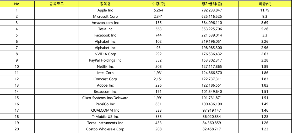 미국 나스닥 100종목을 담다