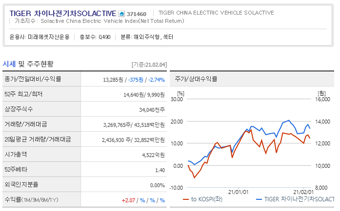 TIGER 차이나전기차 SOLACTIVE의 수수료는 0.49%입니다. 1000만 원 투자 시 5만 원입니다.