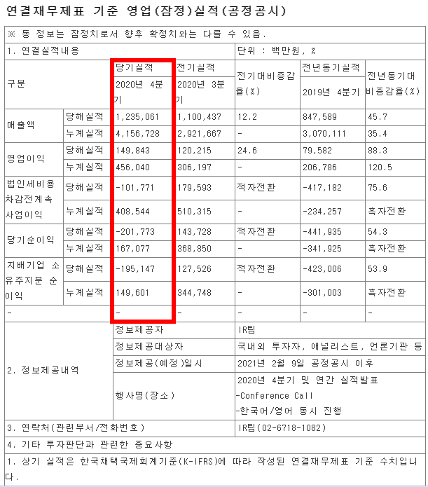2020 4분기 카카오 실적