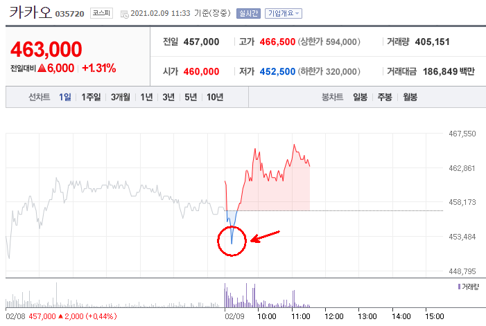 실적이 좋아도 실적 발표 후에 하락하는 경우가 있는데, 이는 기존 주가에 이미 실적 예상치가 반영되었다고 보고 매도하는 투자자들이 있기 때문입니다. 그래서 실적이 좋아도 주가가 떨어지는 경우도 있습니다. 다행히 카카오는 현재 좋은 흐름을 보여주고 있지만 종가 기준으로 어떻게 될지는 아무도 모르는 일입니다.