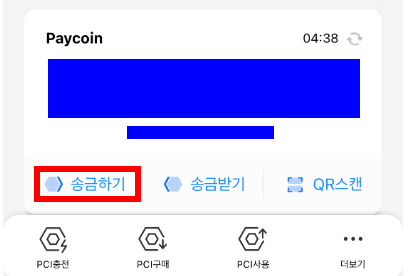 페이코인 앱을 열고 하단에 송금하기 버튼을 누릅니다.