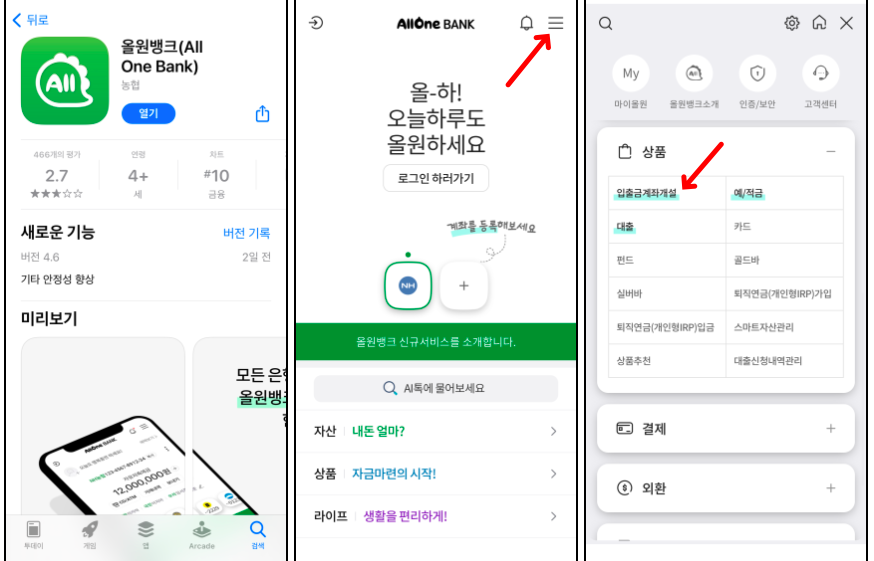 NH스마트뱅킹 또는 올원뱅크 앱을 다운로드하여 비대면 계좌 개설을 하면 됩니다.