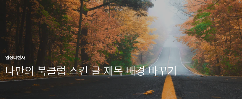 북클럽 스킨 적용 후 폰트 크기 키우기와 썸네일 사각형으로 만들기는 북클럽 스킨 글자 크기 변경하고 썸네일 정사각형 만들기 게시물을 참고해주세요. 이번에는 북클럽 스킨에서 글 작성 시 제일 처음 올린 사진이 글 제목의 배경으로 들어가는 현상에 대해 해결해보겠습니다.