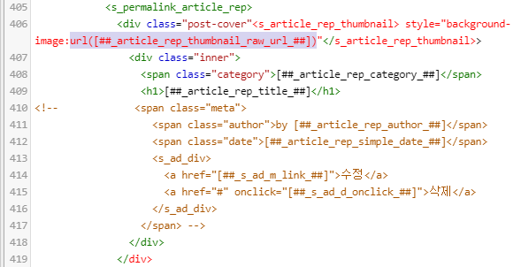 만약 위에서 글쓴이와 날짜를 삭제하지 않았다면 이 부분의 컬러도 바꾸어주어야 합니다. .post-cover .meta 부분의 컬러를 바꾸어 줍니다. 여기에서는 글쓴이와 날짜를 삭제하지 않았기 때문에 별도의 수정은 필요 없습니다.