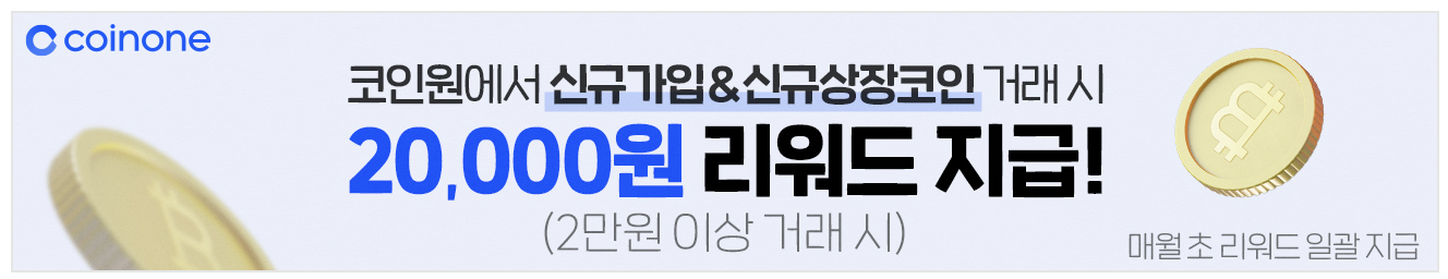 - 신규 상장 코인을 원화 기준 20,000 원 이상 거래