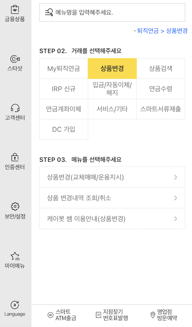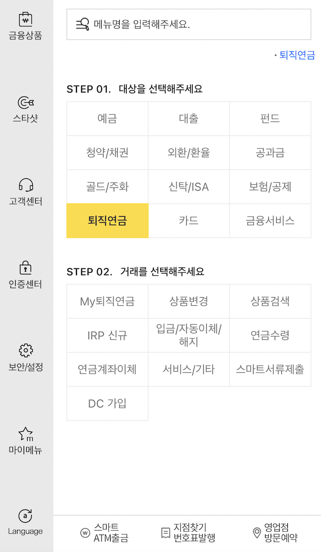 개인형 IRP에 투자된 내용을 확인하기 위해 KB국민은행 앱을 켭니다.