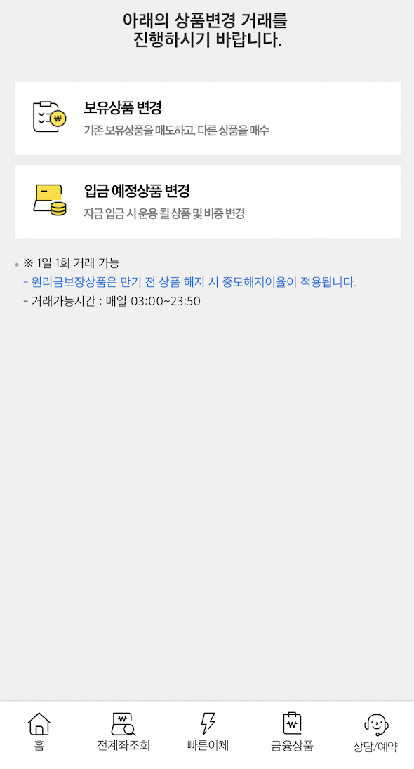 - 변경할 계좌 선택(일반적으로 추가 가입하지 않으면 1개 계좌가 보임)