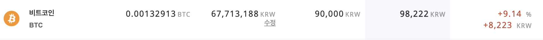비트코인 9일차 투자 수익률