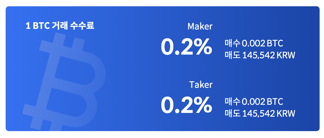 일단 현재는 메이커와 테이커의 수수료 모두 0.2%로 동일하게 바뀌었습니다.