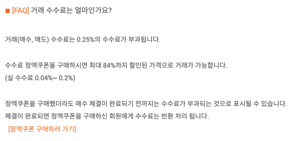 빗썸의 경우 수수료가 0.25%로 다른 거래소보다 비싼 편입니다. 빗썸 수수료 폭탄 조심 | 수수료 정액쿠폰 써야 하는 이유를 참고하여 수수료 정액 쿠폰을 이용하는 것이 좋습니다.
