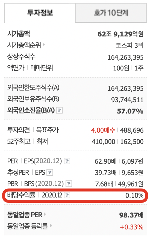 네이버와 카카오 배당수익률 비교